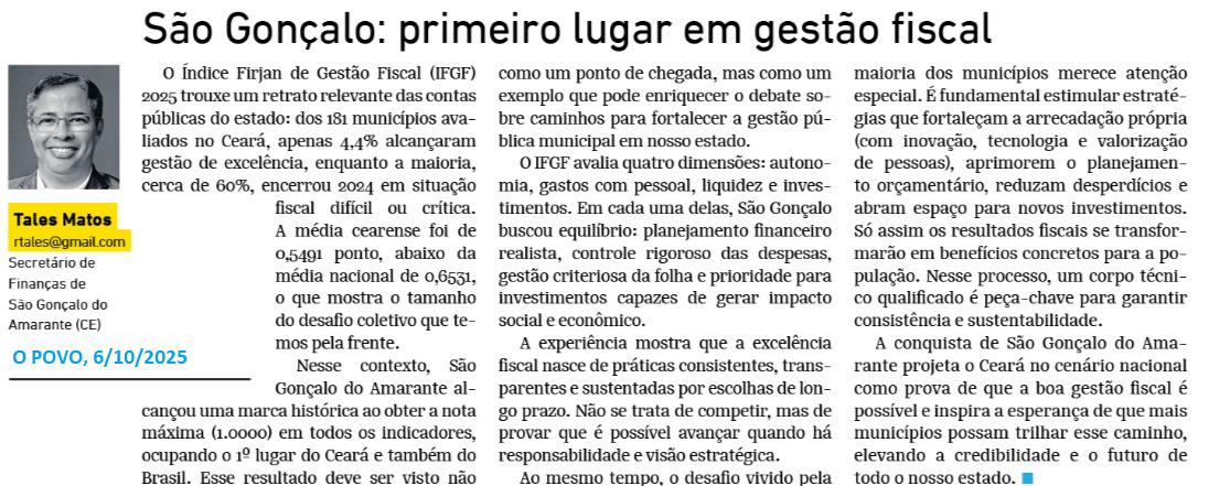 Confira artigos produzidos pelos membros do Fórum Municipal da Região Metropolitana de Fortaleza, com reflexões, experiências e boas práticas na gestão pública e financeira do município.